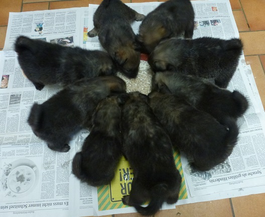 Welpen sind jetzt 5 Wochen alt und haben sich durch die Führsorge